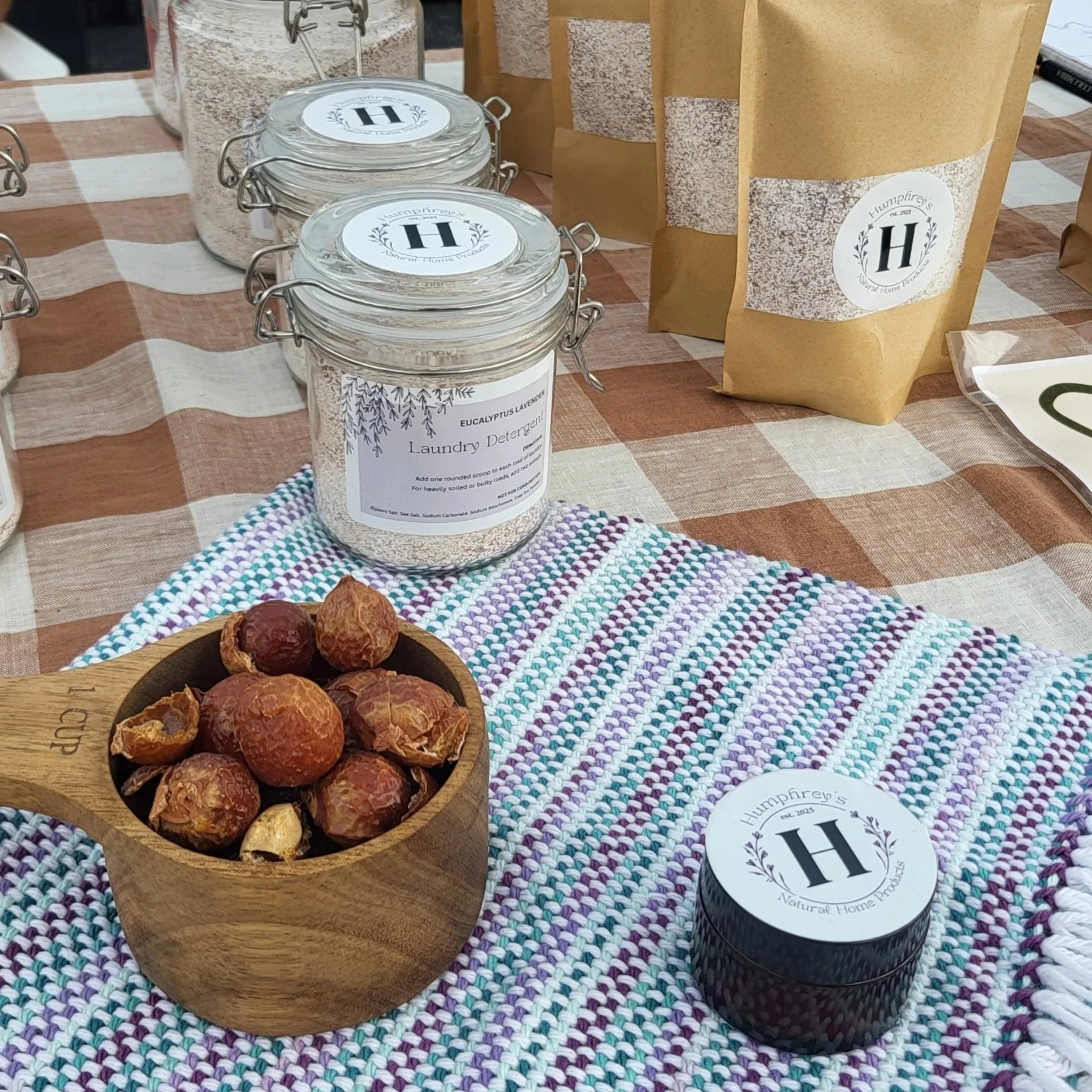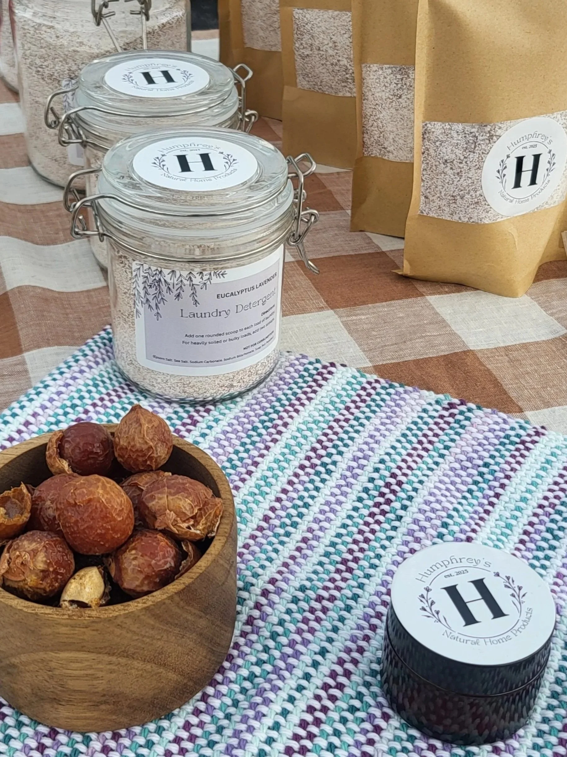 Baking soda, washing soda, Epsom salt, sea salts, soap nuts, and essential oils.